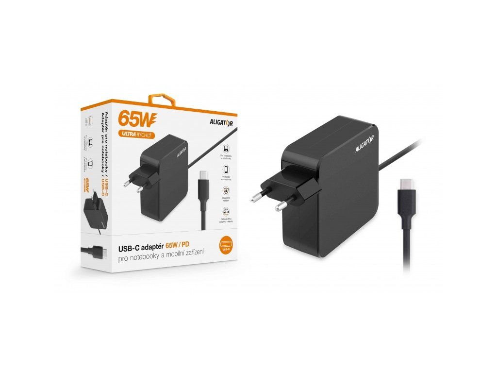 Chytrý USB-C adaptér ALIGATOR Power Delivery 65WVýkonný síťový adaptér řady „POWER DELIVERY“ s ultra rychlým USB-C konektorem o výkonu 65W.