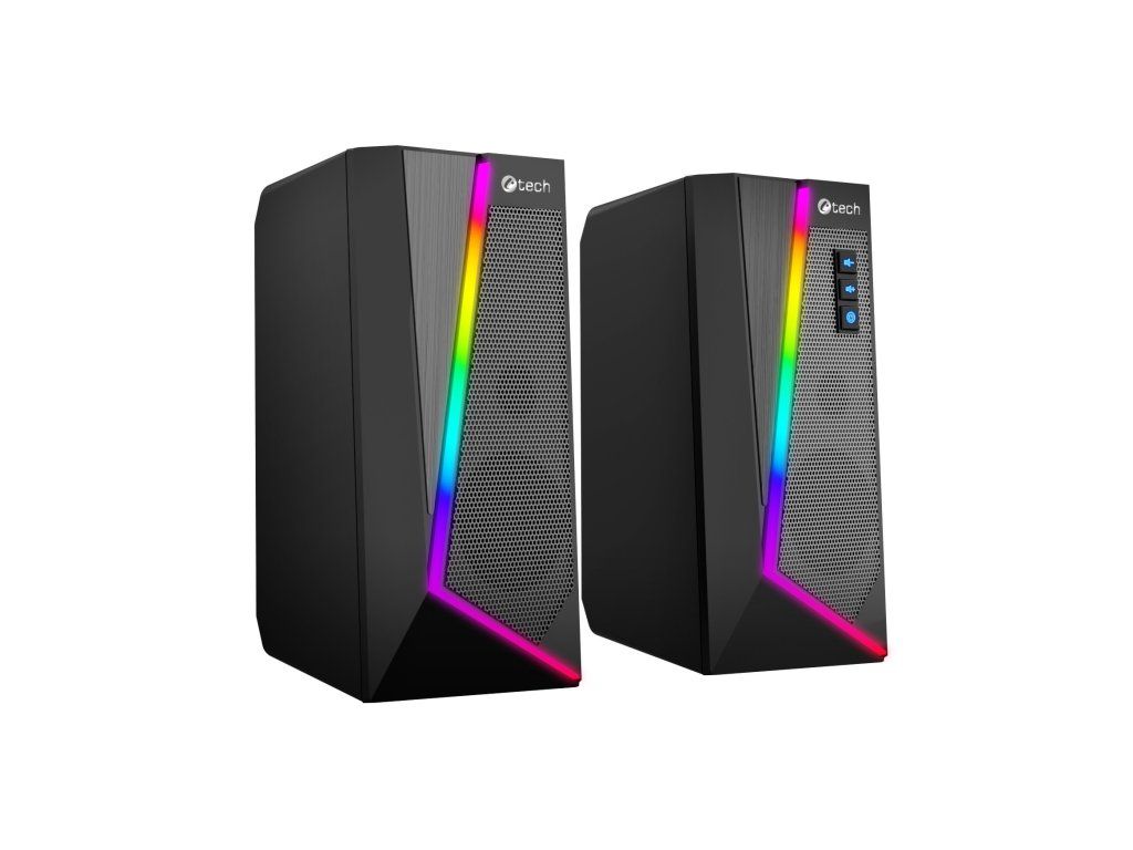 Stolní PC reproduktory C-tech SPK-17 s elegantním designem a decentním RGB osvětlením se stanou stylovým doplňkem každého pracovního stolu. Díky 40mm měničům s širokým frekvenčním rozsahem dopřejí vašim uším velmi kvalitní reprodukci. RGB osvětlení disponuje 6 různými světelnými režimy, které vám zaručí originální vizuální zážitky. Volba režimu je velmi jednoduchá a to dotykem na horní ploše řídícího reproduktoru. Reproduktory připojíte k počítači pomocí 3,5mm audio kabelu a nemusíte si dělat starosti ani s přídavným napájením, protože reproduktory C-tech SPK-17 jsou napájené přímo z USB vašeho počítače a tak se Vám automaticky spustí či vypnou společně s počítačem či notebookem. K ovládání hlasitosti poslouží tlačítka nacházející se na jednom z reproduktorů. Společně s ovládáním hlasitosti, je možno stiskem dalšího tlačítka vypnout RGB podsvětlení reproduktoru.Specifikace: