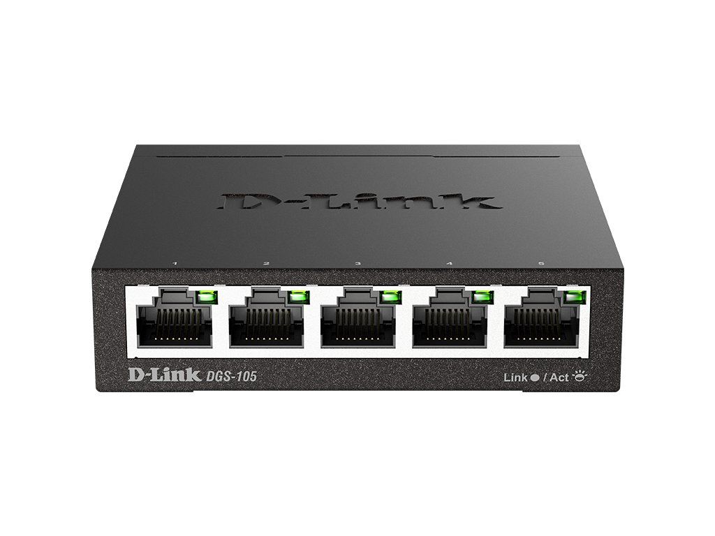 5portový gigabitový neřízený stolní přepínač DGS-105 nabízí ekonomický způsob pro malé a střední podniky a malé a střední podniky, jak těžit ze zvýšené šířky pásma gigabitového Ethernetu. Poskytuje pět gigabitových portů pro snadné rozšíření vaší sítě a rychlý způsob upgradu sítě na gigabitové připojení.